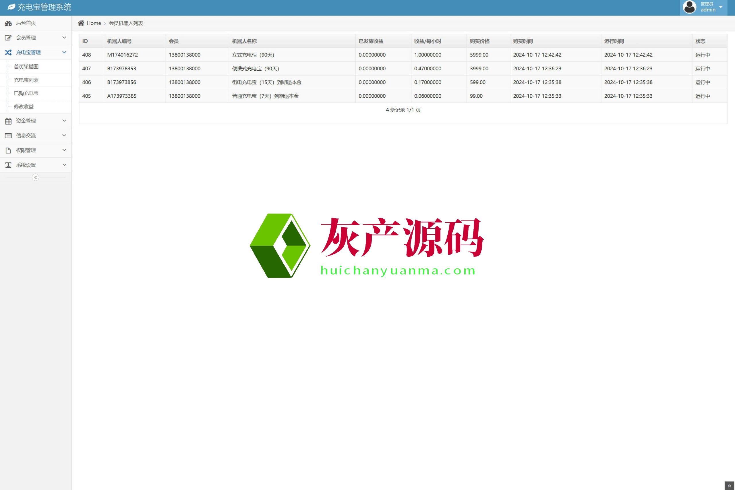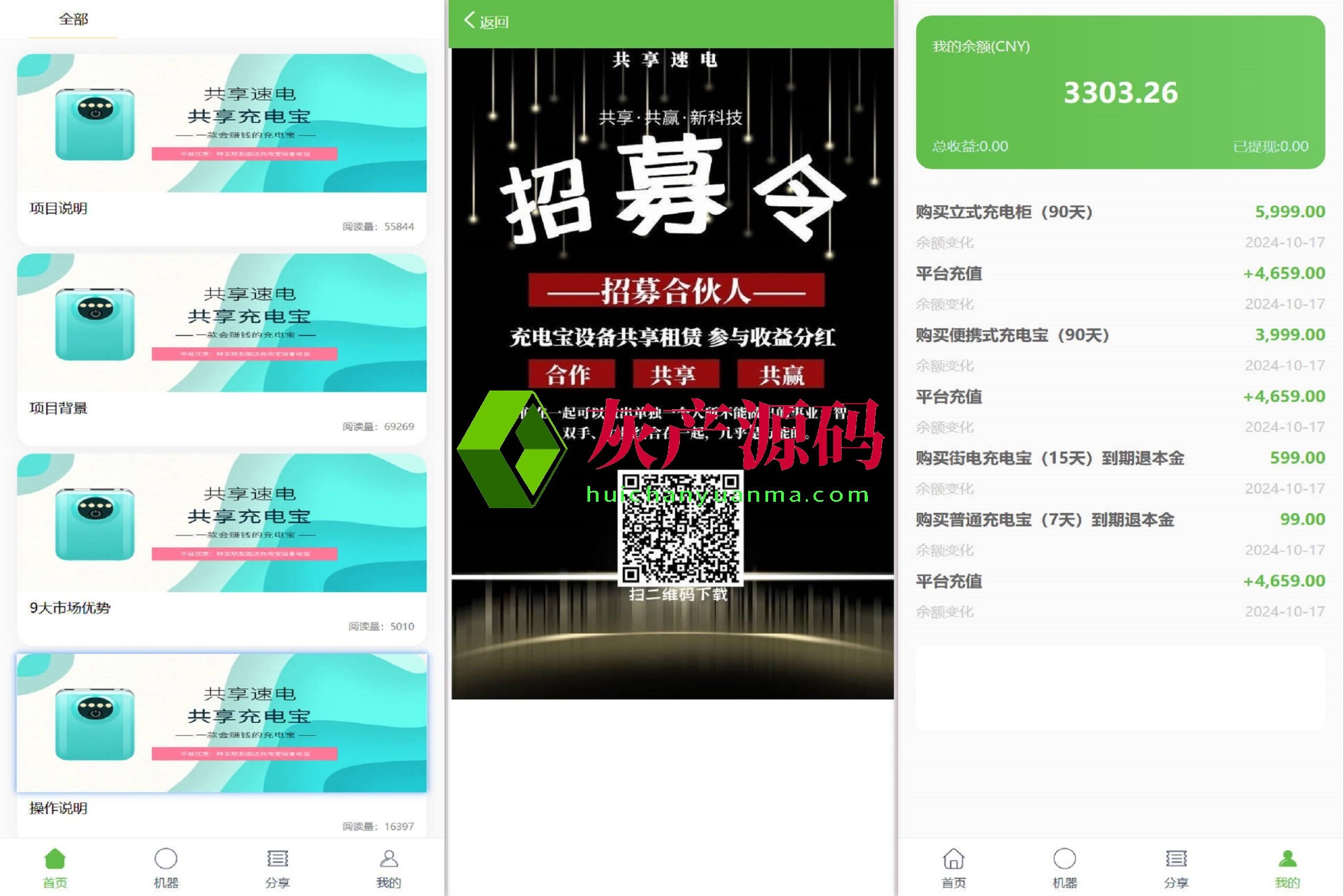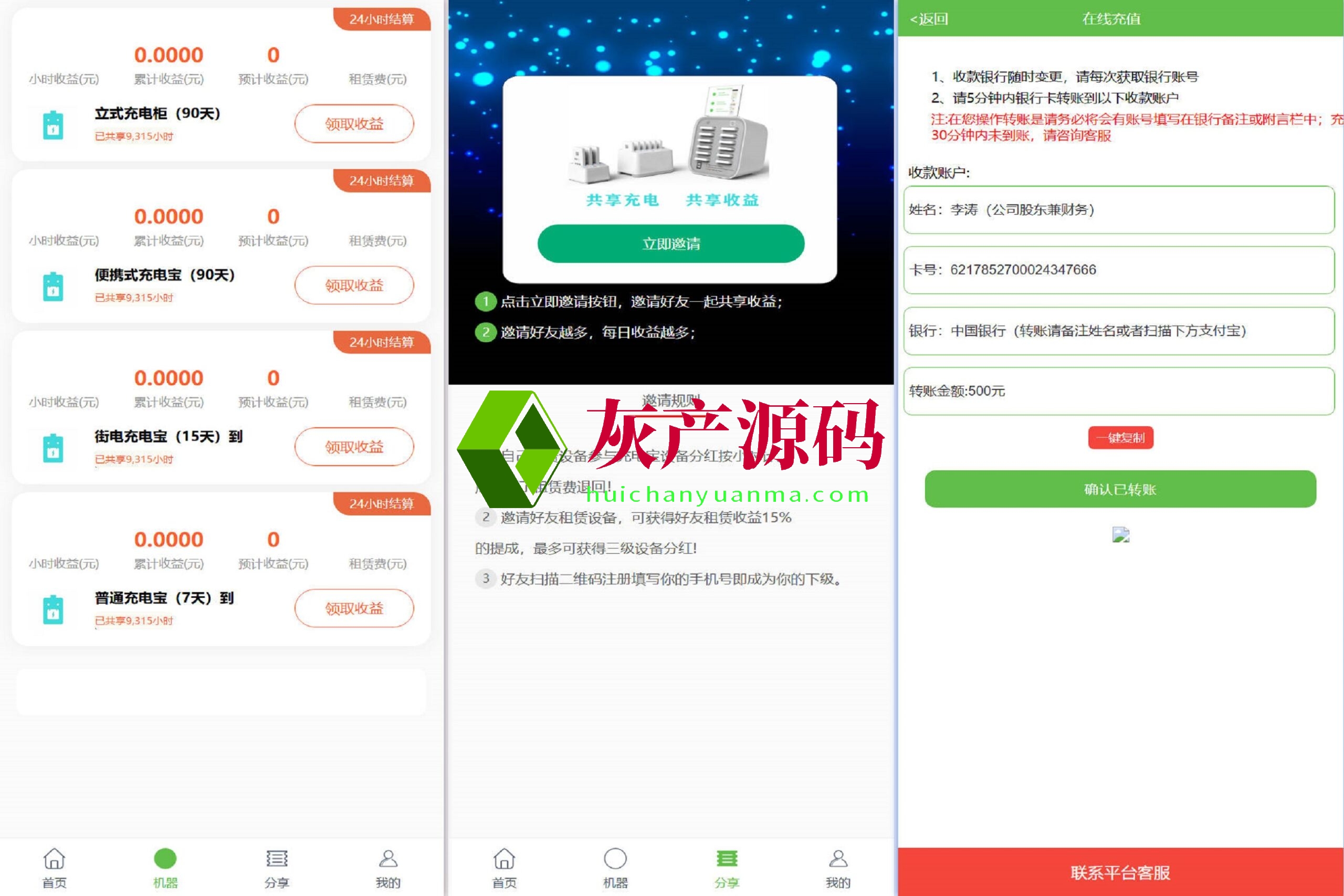 街电充电宝投资理财系统,投资返利盘,有独立的代理端。两种模式可选:到期退回本金/到期不退回本金。