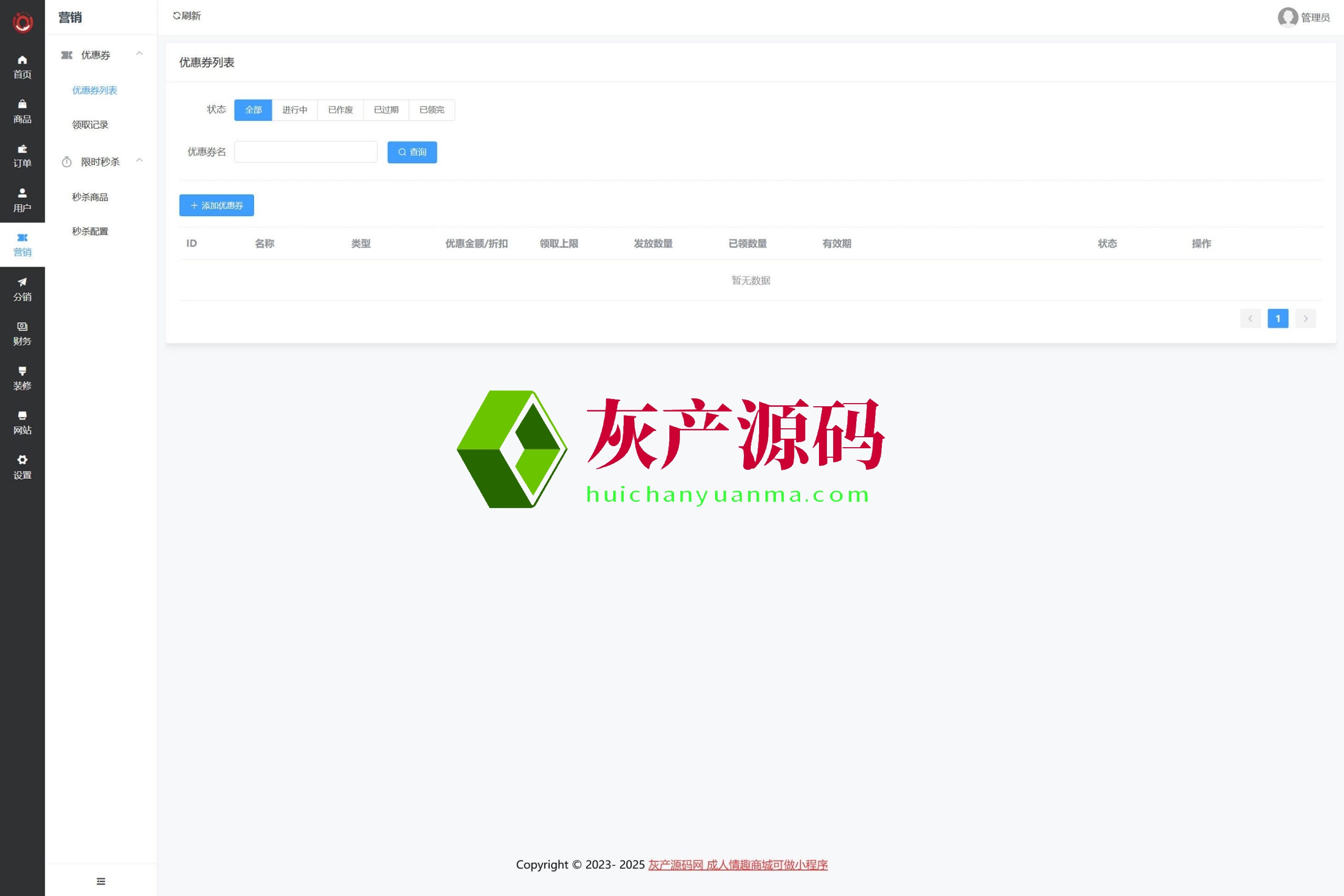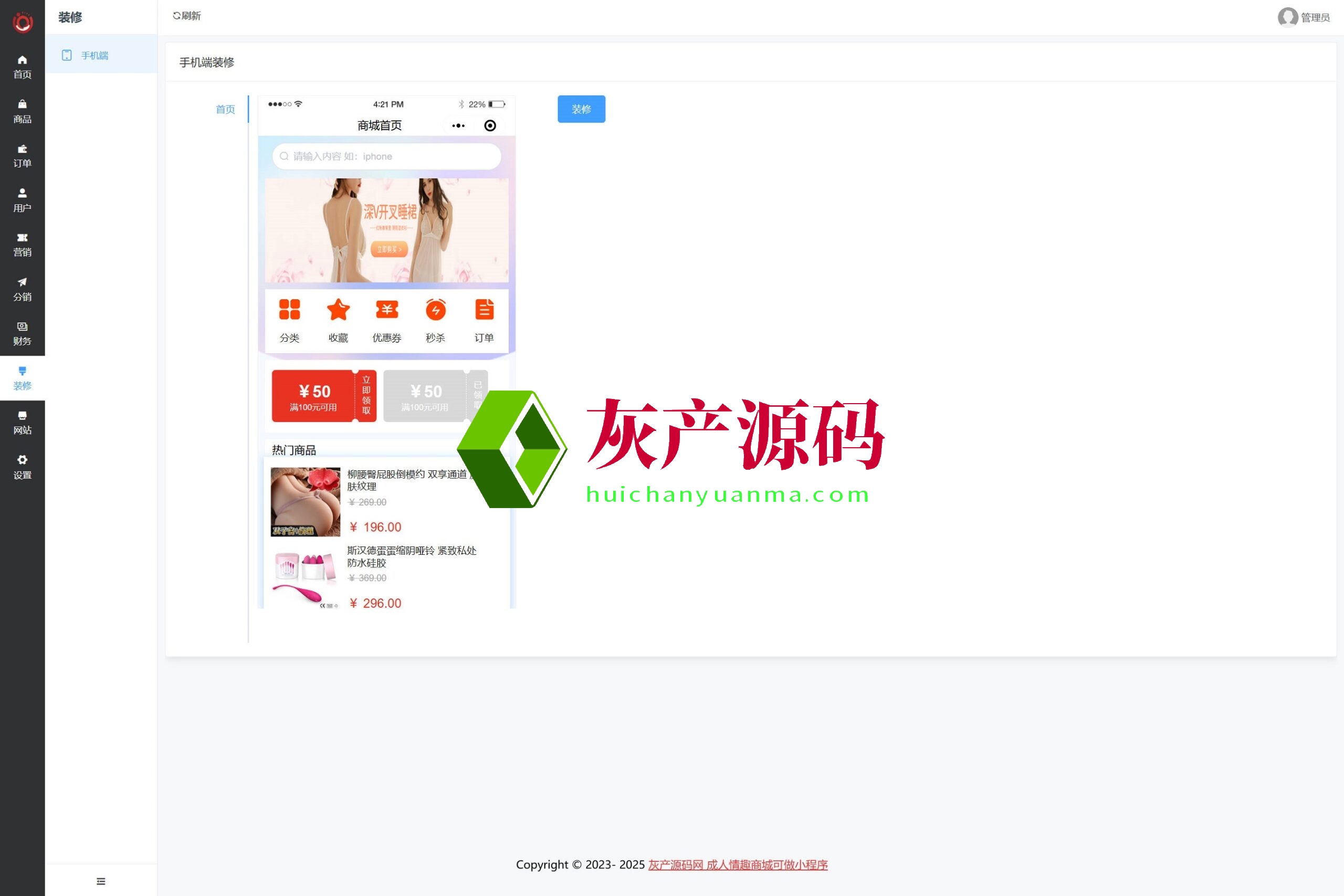 成人情趣商城可做小程序带秒杀优惠券,功能很齐全,支持 DIY 自定义前端界面,有分销功能。
