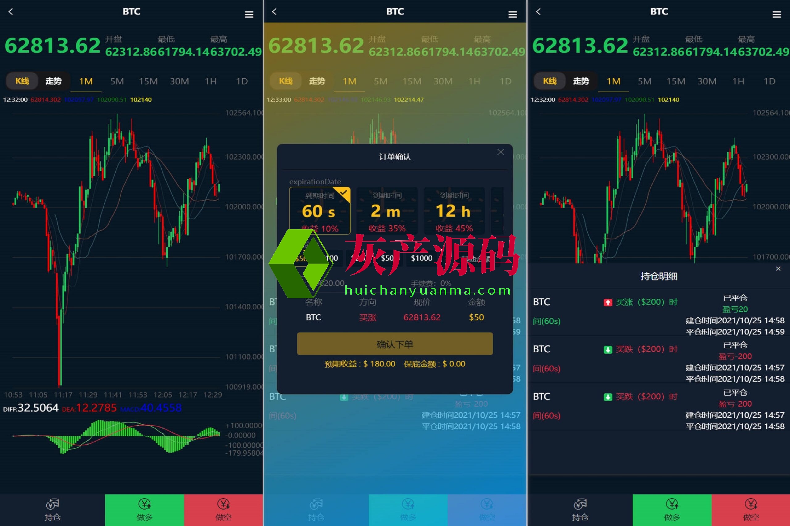 五语言区块链虚拟币微盘微交易时间盘,合约、秒合约交易,对接USDT充提,K线波动完整对接火币行情数据。